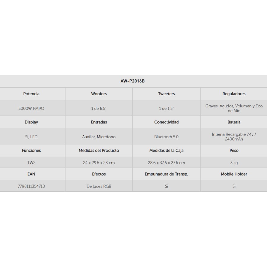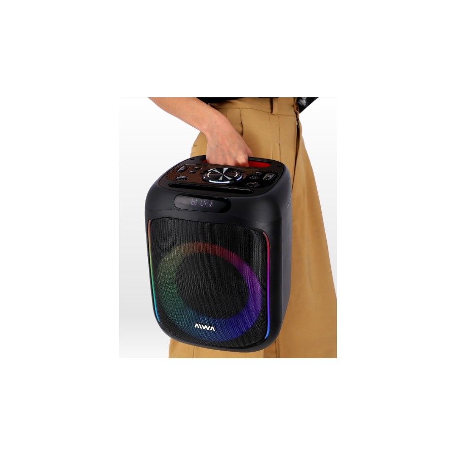 Perfecto para tus aventuras al aire libre, este altavoz es altamente portátil y produce un sonido potente y de alta calidad. Además, sus luces RGB te ofrecen la mejor experiencia visual para acompañar cualquier canción.