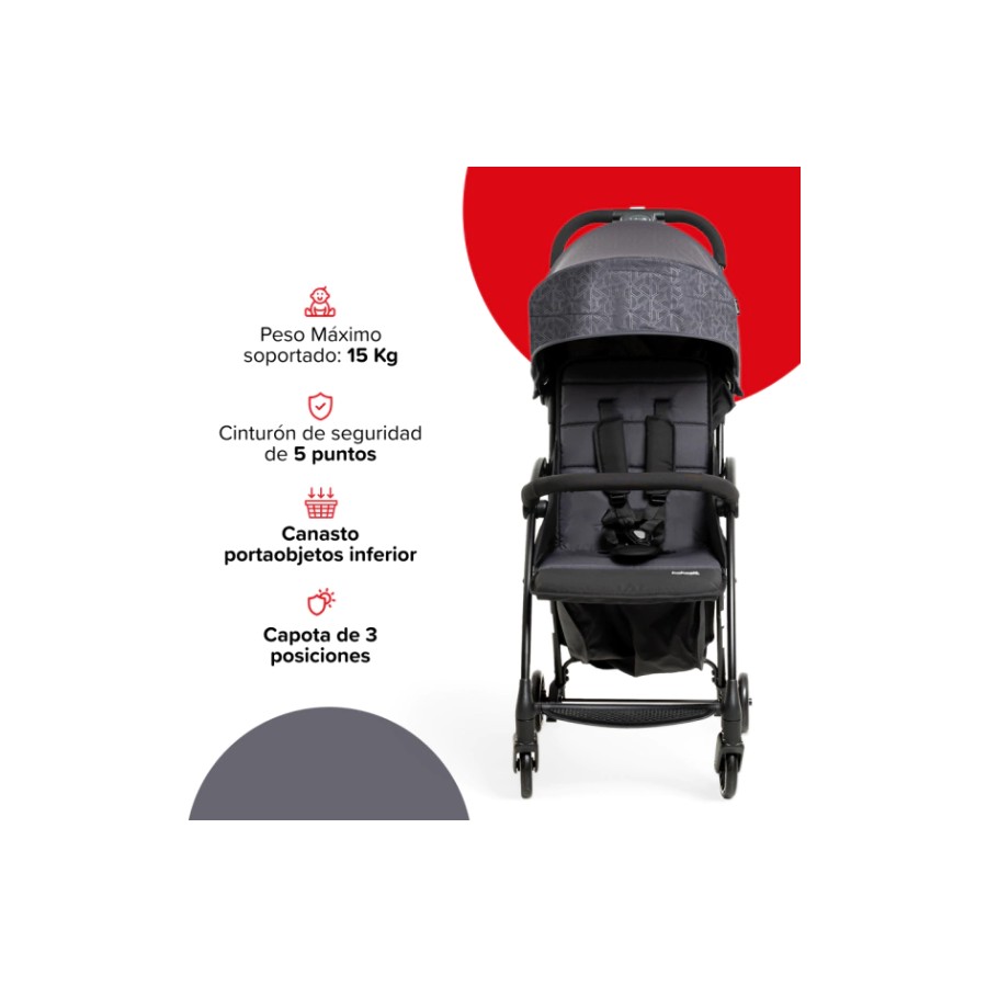 El cochecito Foldy es la opción perfecta para acompañarte en cada salida con tu bebé. Diseñado pensando en la practicidad, su plegado compacto y fácil manejo lo hacen ideal para la vida diaria.