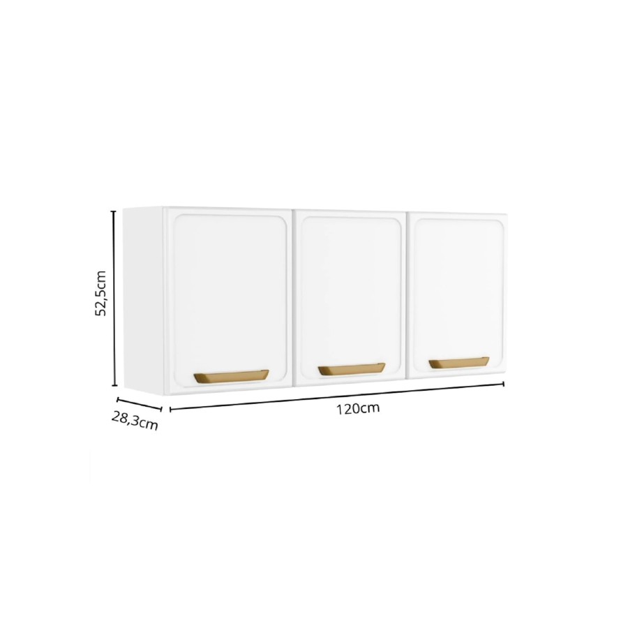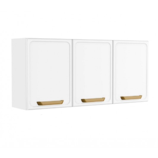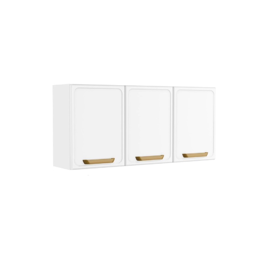 Este elegante gabinete superior está fabricado en acero al carbono, lo que garantiza durabilidad y resistencia. Su diseño de 3 puertas en un sofisticado color blanco y tiradores dorados se adapta a cualquier estilo de cocina.