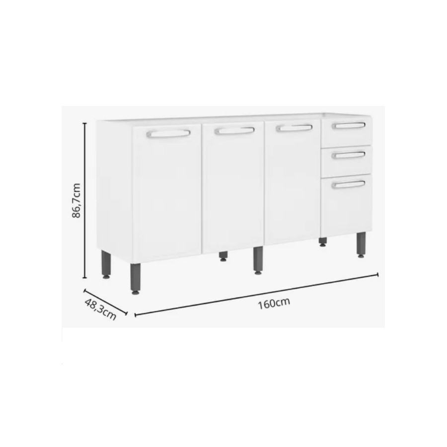 Bajo Mesada De Acero Bertolini Mod. Evidence 1.60 Blanco EBO-160