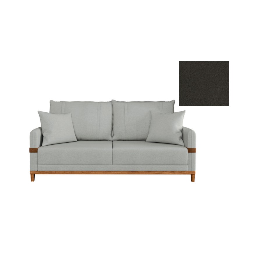 Apoyabrazos con detalle de correa y hebilla de madera;
