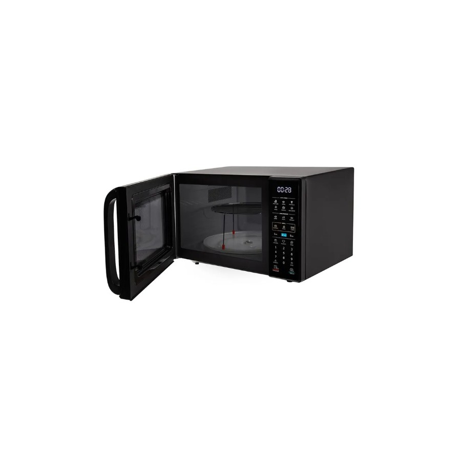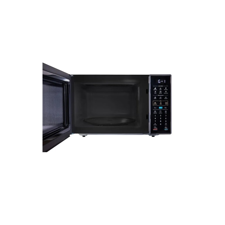 Equipado con una potencia de salida de 900W y grill de 1000W, este modelo permite calentar, descongelar y gratinar con resultados parejos y rápidos. Su plato giratorio de vidrio de 315 mm y luz interior LED aseguran una cocción homogénea y una perfecta visualización del contenido durante el proceso.