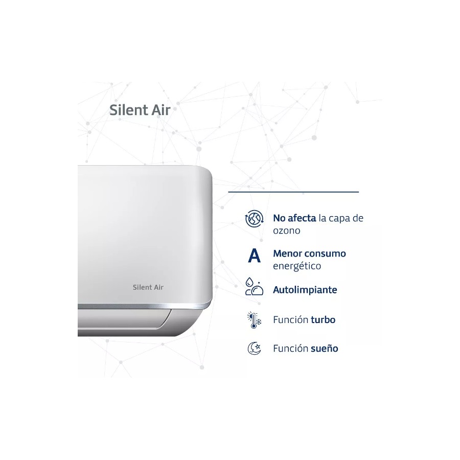 El aire acondicionado BGH Silent Air BS-26WCCR es un modelo split de frío y calor con una capacidad de refrigeración de 2600W y 2300 frigorías. Es ideal para climatizar espacios de tamaño mediano, como habitaciones o estudios. Se caracteriza por su bajo nivel de ruido, su eficiencia energética (clase A) y su diseño elegante.