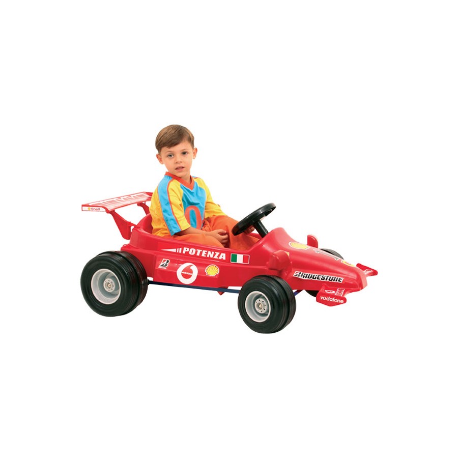 ¡Haz que tu hijo viva la experiencia de ser un piloto de Fórmula 1 con este increíble auto a pedal Ferrari F1! Este vehículo es ideal para los pequeños que sueñan con la velocidad y la emoción de las carreras. Con un diseño exclusivo que replica el look de un verdadero auto de carreras Ferrari, este modelo les permitirá sentirse como campeones en cada carrera. El auto a pedal cuenta con un tamaño de 118 cm x 77 cm x 52 cm, ofreciendo espacio suficiente para que los niños se sientan cómodos mientras juegan y corren. Equipado con una bocina, añade un toque de realismo y diversión extra a la experiencia, permitiendo a los niños hacer sonar su vehículo mientras se lanzan a nuevas aventuras.