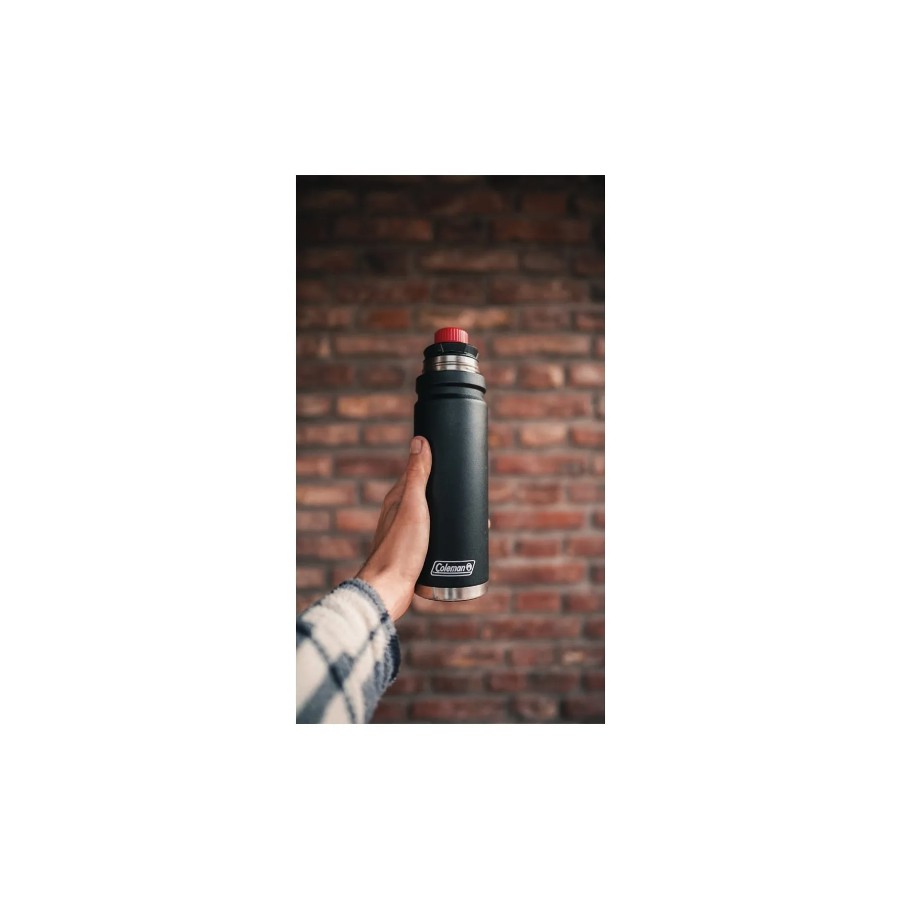- El Termo Coleman esta construido en acero inoxidable 18/8 de doble pared, con aislamiento al vacío, lo que mantiene el agua caliente por hasta 25 horas, y fría por hasta 48 horas