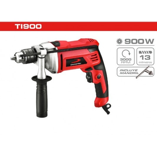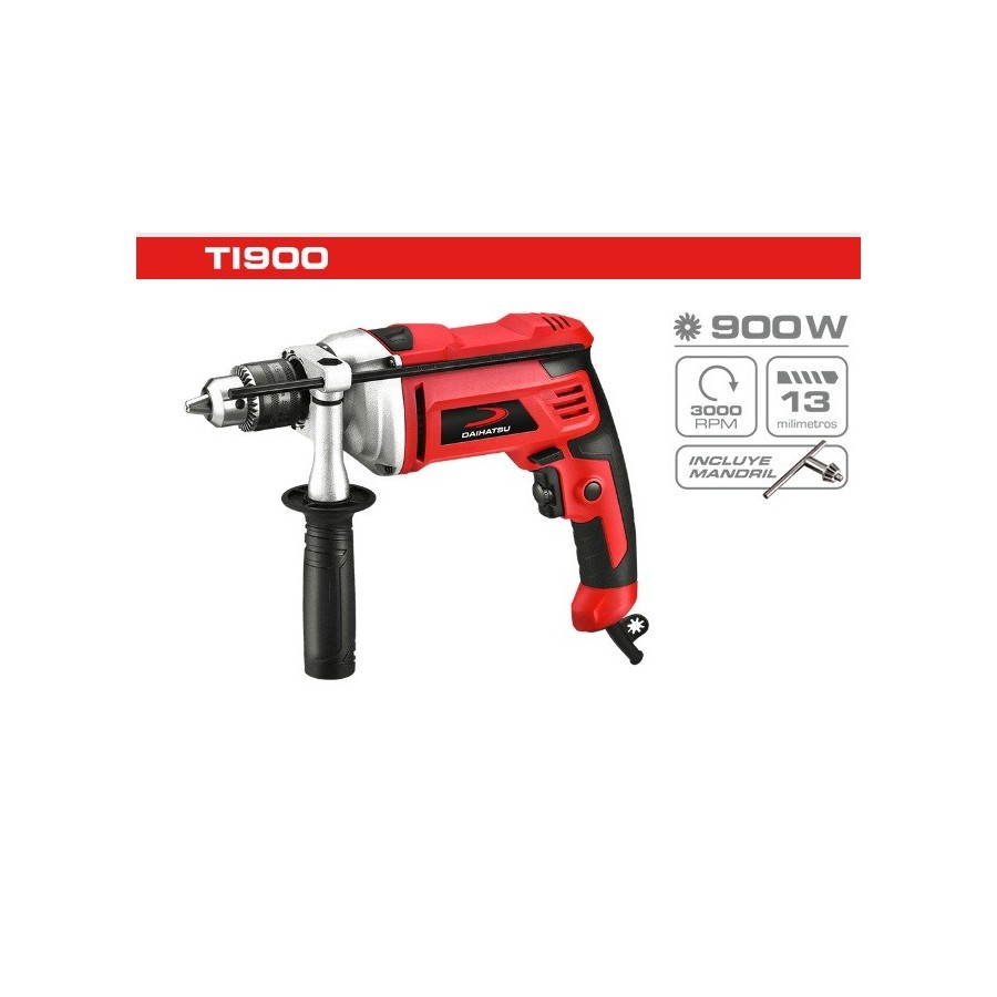 Taladro de impacto de 900W. - Soporta mechas de 13 mm - Control de velocidad variable - Funciones de reversa y percutor - Traba para operación continua - Diseño ergonómico y robusto con cabezal de aluminio |