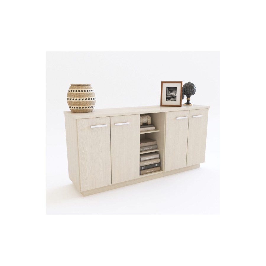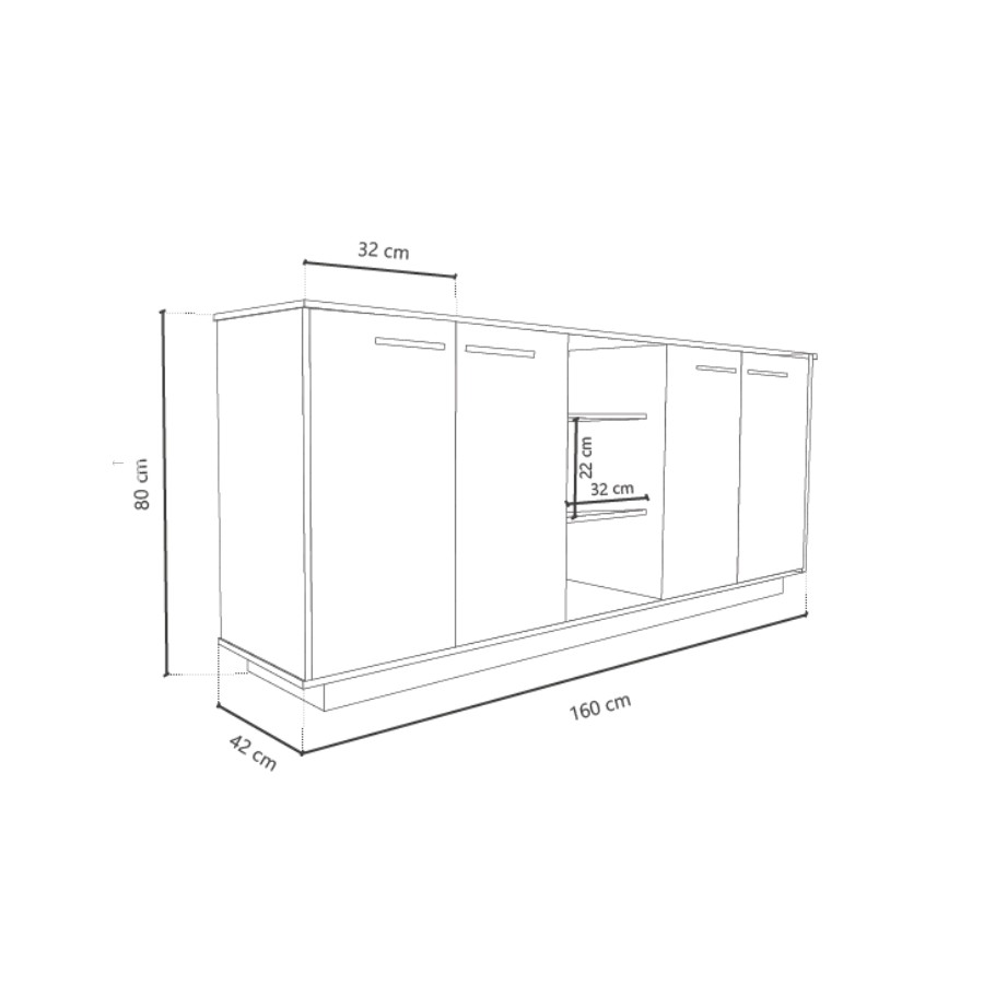 Con el Buffet Boston de 1,60 cm, tenés suficiente espacio para organizar tus utensilios. Con 4 puertas, estantes y un acabado en melamina, este buffet es perfecto para los amantes del orden y la estética.