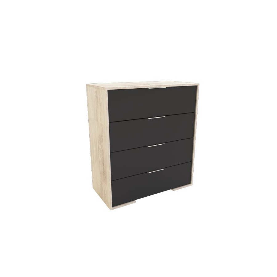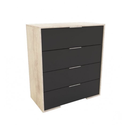 La Cómoda Duo 4 cajones de Delos es el complemento ideal para tu dormitorio. Sus 4 cajones con guías metálicas ofrecen amplio espacio para almacenar y organizar, mientras que su diseño en melamina y aluminio proporciona un look moderno y duradero.
