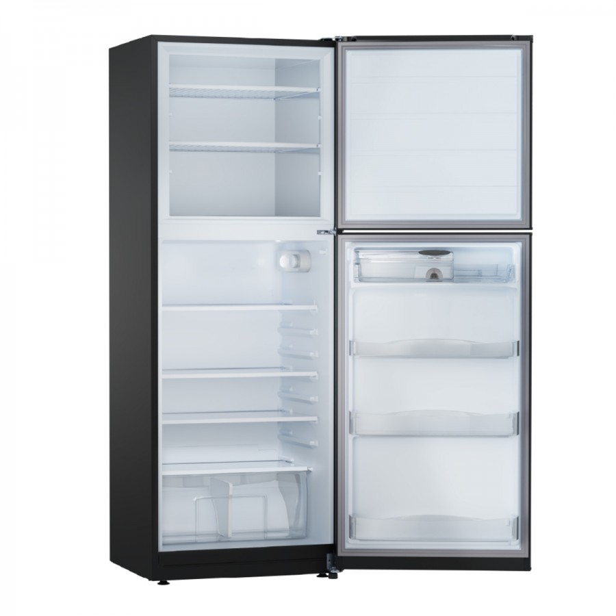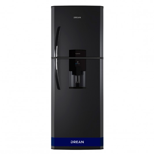 Heladera con freezer cíclica. Eficiencia energética A+. Color black steel. Gas ecológico R600a. Capacidad bruta 396 litros. Capacidad neta 392 litros. Deshielo manual. Dispenser de 2 litros. Estantes regulables en altura de vidrio en refrigerador y alambrón en freezer. Anaqueles en contrapuerta regulables en altura. Cajón para frutas y verduras. Cubeteras. Huevera. Apertura de puerta controlada. Control de temperatura con perilla interior. Luz LED. Patas regulables. Ruedas. Origen Argentina.