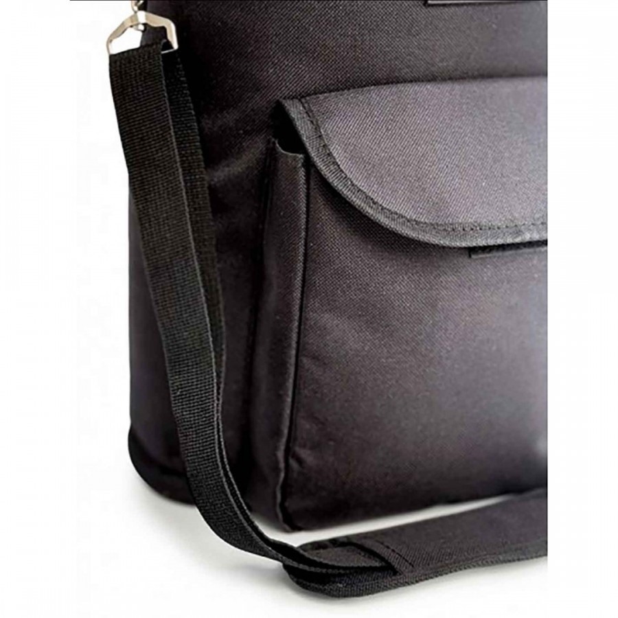Está realizado con una tela especial, antidesgarro y antipolvo lo que hace que sea de fácil mantenimiento y limpieza. Incluye un bolsillo frontal que te permite cargar otros complementos como cubiertos o servilletas, celular y cargador, entre otras posibilidades. Ofrece dos tipos de agarre para que puedas transportarla como bolso o con correa ajustable.