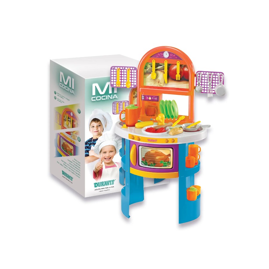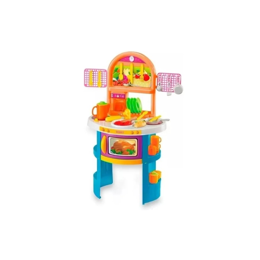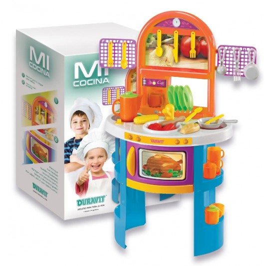 Incluye Horno, Anafe, Canilla, Secaplatos, Tetera, Sarten, Vasos, Platos, Cubiertos, Comiditas y Pequeñas alacenas para guardar a los costados y arriba.