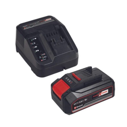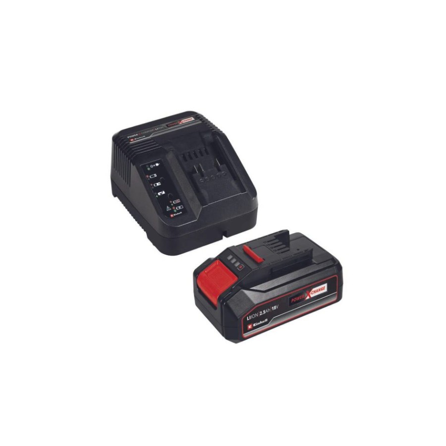 El Starter Kit Einhell 18V 2.5Ah PXC es la base ideal para comenzar o expandir la gama Power X-Change en su hogar. El Starter Kit con una batería recargable Power X-Change PLUS de 18 V y 2,5 Ah y un cargador de batería de alta velocidad es un miembro del sistema de batería recargable Power X-Change multifuncional y completamente intercambiable de Einhell. Las baterías recargables Power X-Change se pueden utilizar universalmente para suministrar energía y resistencia a todas las herramientas inalámbricas de toda la familia de productos de jardín y taller. Los cargadores de la serie también se pueden utilizar universalmente para cada batería recargable PXC. Las ventajas para el cliente son obvias: una sola batería recargable y un solo cargador para todas las herramientas no solo ahorra importantes costos de compra, El uso universal también ayuda a proteger el medio ambiente y proporciona flexibilidad en el hogar y el jardín también. También elimina el desorden y el caos de tener diferentes baterías recargables y cargadores para cada herramienta por separado. La batería recargable de alta calidad resiste el efecto memoria y la autodescarga normalmente asociada con las baterías, para brindar una alta potencia constante. La Power X-Change de 18 V y 2,5 Ah es la batería recargable básica ideal de la familia Power X-Change y también es adecuada para el uso de TWIN-PACK para aplicaciones de 36 V. El sistema de gestión de batería activo controlado por proceso ABS tiene un microprocesador para monitorear permanentemente los parámetros de la batería. Por lo tanto, garantiza la máxima seguridad, un rendimiento óptimo de la herramienta, un tiempo de funcionamiento máximo y una vida útil máxima. El nivel de carga actual se puede verificar en una pantalla LED de 3 pasos. La carcasa está diseñada para ser resistente al polvo, la corrosión y las influencias mecánicas. Hay un asa de bandeja para permitir que la batería se retire de cada herramienta con facilidad. El cargador de batería de alta velocidad tiene un diseño compacto y, por lo tanto, ocupa poco espacio, y tiene ojales de suspensión integrados para colgarlo fácilmente en la pared. La tecnología de carga de alta velocidad significa tiempos de carga cortos, y para una carga óptima y máxima seguridad, la batería es monitoreada permanentemente por un sistema de gestión de carga inteligente. Hay un modo de actualización para reactivar las baterías que se han descargado exhaustivamente. El indicador LED de nivel de carga de 6 etapas proporciona toda la información actualizada. Hay un asa de bandeja para permitir que la batería se retire de cada herramienta con facilidad. El cargador de batería de alta velocidad tiene un diseño compacto y, por lo tanto, ocupa poco espacio, y tiene ojales de suspensión integrados para colgarlo fácilmente en la pared. La tecnología de carga de alta velocidad significa tiempos de carga cortos, y para una carga óptima y máxima seguridad, la batería es monitoreada permanentemente por un sistema de gestión de carga inteligente. Hay un modo de actualización para reactivar las baterías que se han descargado exhaustivamente. El indicador LED de nivel de carga de 6 etapas proporciona toda la información actualizada. Hay un asa de bandeja para permitir que la batería se retire de cada herramienta con facilidad. El cargador de batería de alta velocidad tiene un diseño compacto y, por lo tanto, ocupa poco espacio, y tiene ojales de suspensión integrados para colgarlo fácilmente en la pared. La tecnología de carga de alta velocidad significa tiempos de carga cortos, y para una carga óptima y máxima seguridad, la batería es monitoreada permanentemente por un sistema de gestión de carga inteligente. Hay un modo de actualización para reactivar las baterías que se han descargado exhaustivamente. El indicador LED de nivel de carga de 6 etapas proporciona toda la información actualizada. La tecnología de carga de alta velocidad significa tiempos de carga cortos, y para una carga óptima y máxima seguridad, la batería es monitoreada permanentemente por un sistema de gestión de carga inteligente. Hay un modo de actualización para reactivar las baterías que se han descargado exhaustivamente. El indicador LED de nivel de carga de 6 etapas proporciona toda la información actualizada. La tecnología de carga de alta velocidad significa tiempos de carga cortos, y para una carga óptima y máxima seguridad, la batería es monitoreada permanentemente por un sistema de gestión de carga inteligente. Hay un modo de actualización para reactivar las baterías que se han descargado exhaustivamente. El indicador LED de nivel de carga de 6 etapas proporciona toda la información actualizada.