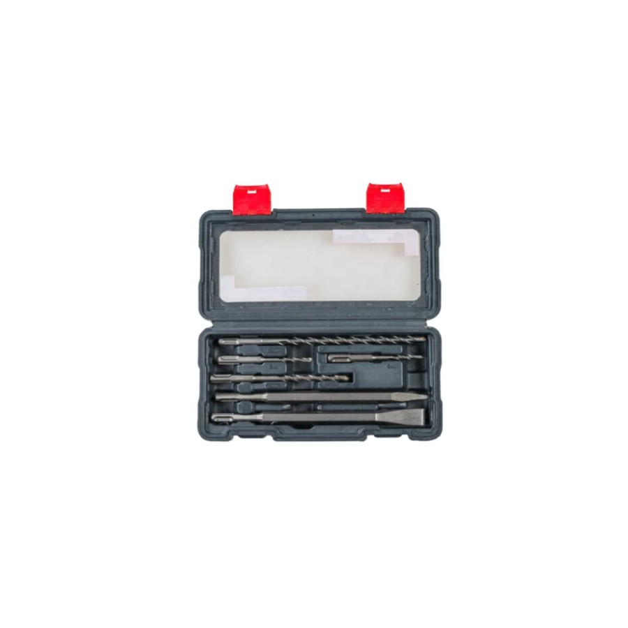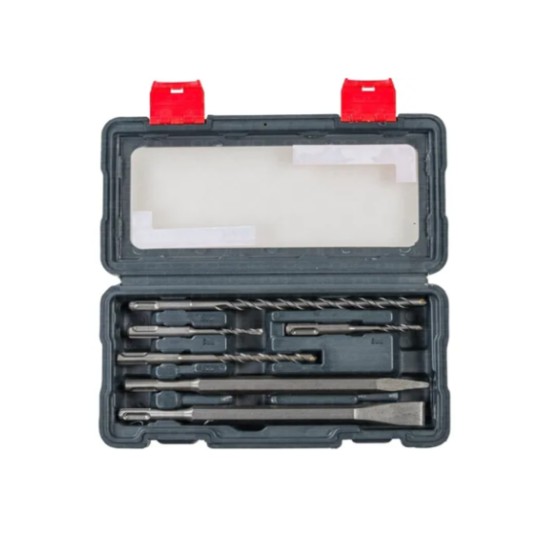Juego de brocas para taladradoras de percusión y cinceles, vástago SDS -plus , punta de la broca autocentrante, soldada a alta temperatura, espiral múltiple para un transporte óptimo del polvo, fricción mínima en la pared y generación mínima de calor, vibraciones optimizadas.