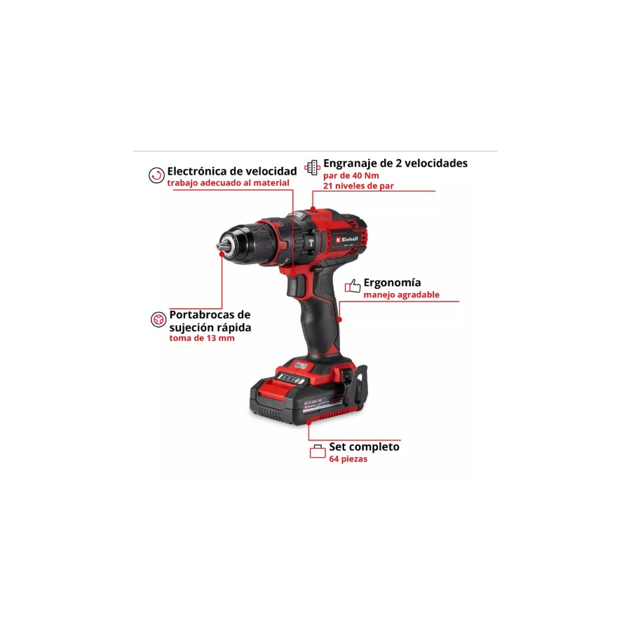 Se presenta en un práctico maletín con un juego de accesorios de 64 piezas