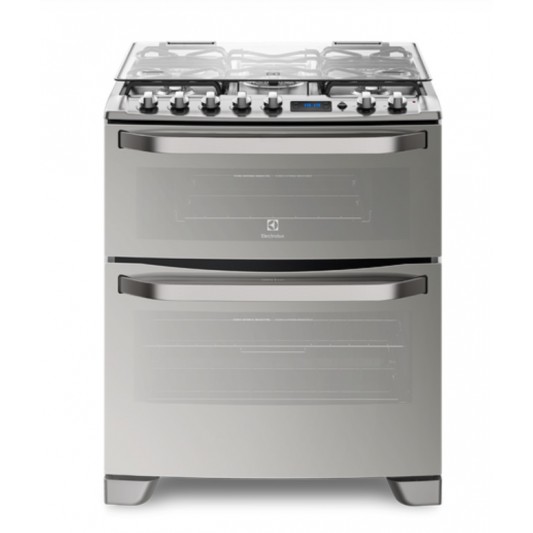 Moderna y segura, la cocina doble horno Electrolux 76DXR cuenta con dos hornos independientes a gas y un grill eléctrico para que puedas gratinar y dorar preparaciones y darle un toque especial a tus alimentos en el tiempo justo, gracias a su temporizador digital y reloj que facilita el control del tiempo de cocción.