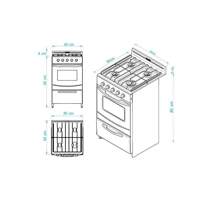 - Quemadores de aluminio con tapa de acero esmaltada.