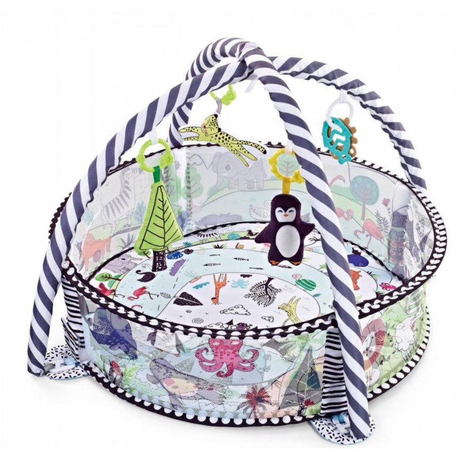 La alfombra didáctica es además en un divertido pelotero. Proporciona el desarrollo de la creatividad, las habilidades motoras, y también permite la estimulación sensorial. Contiene 4 juguetes colgantes extraíbles.
