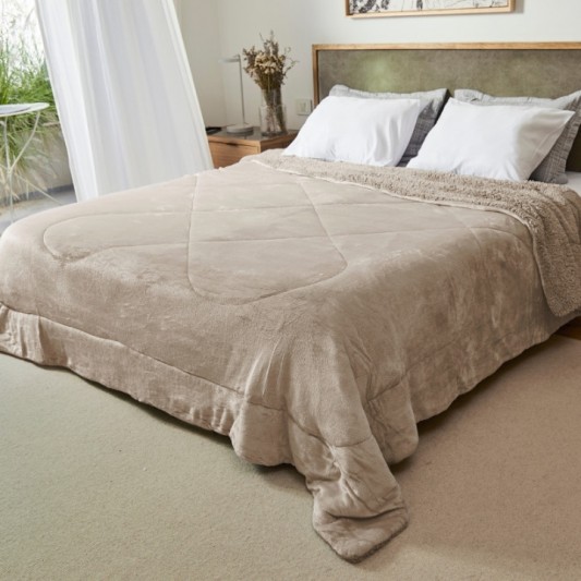 Este increíble producto está confeccionado en flannel supersoft y corderito al tono en el reverso. También cuenta con un relleno super abrigado de fibras de poliéster. Combina elegancia con un potente abrigo que lo hacen ideal para vestir tu cama este invierno!