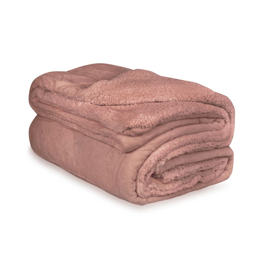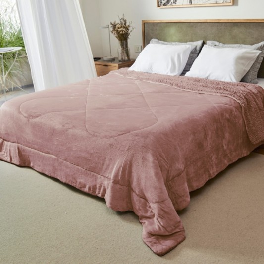 FULLBLANC FRAZADA QUEEN EDREDON FLANNEL CORDERITO ROSA VIEJO