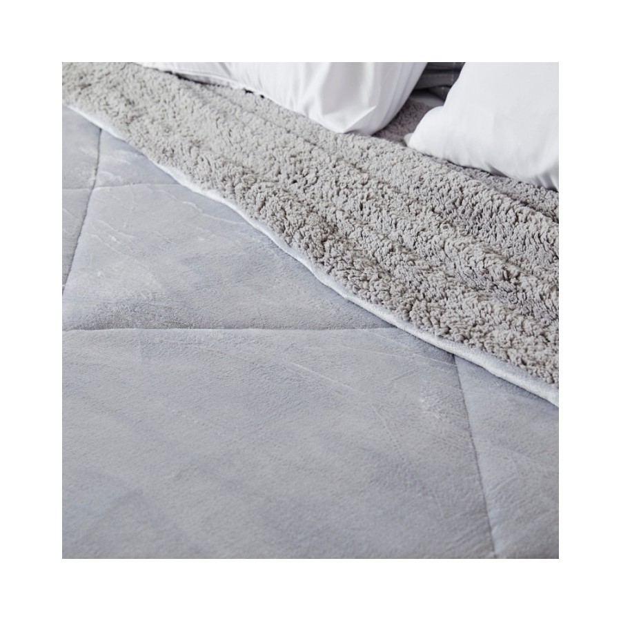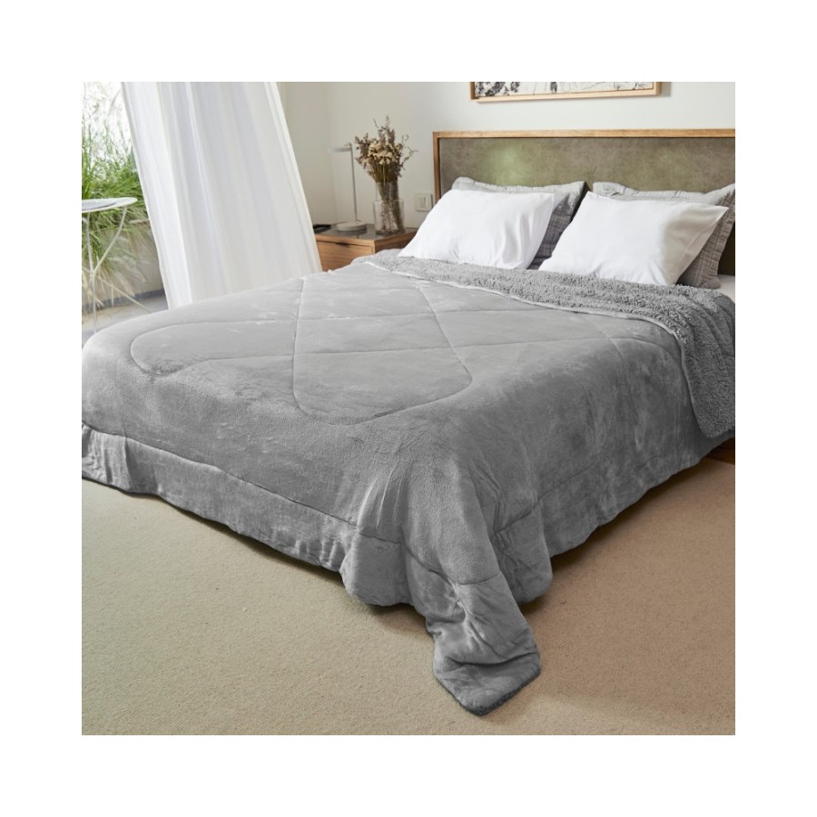 Este increíble producto está confeccionado en flannel supersoft y corderito al tono en el reverso. También cuenta con un relleno super abrigado de fibras de poliéster. Combina elegancia con un potente abrigo que lo hacen ideal para vestir tu cama este invierno!