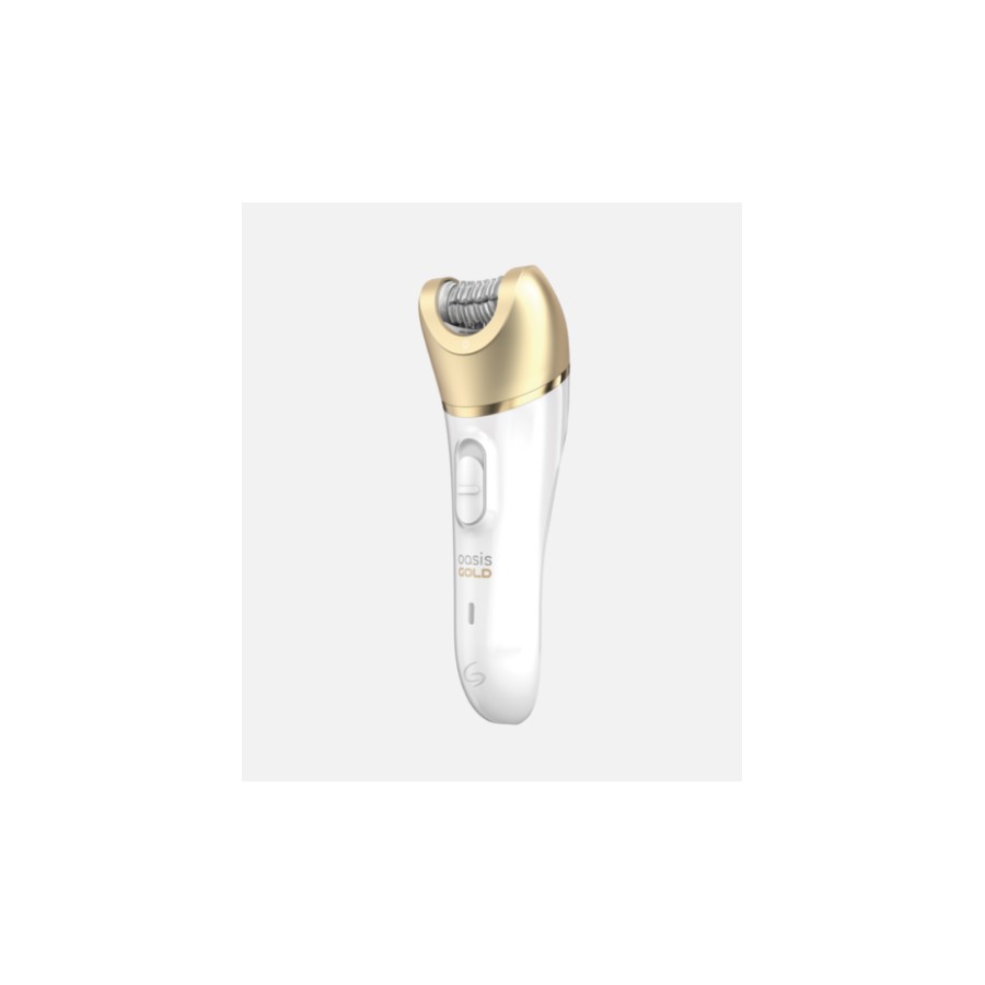 Oasis Gold es la depiladora inalámbrica suave y efectiva de Gama que garantiza una piel increíblemente suave durante hasta 4 semanas. Con un peso de solo 150 gramos, tiene una autonomía de uso de 60 minutos y se carga completamente en 90 minutos.