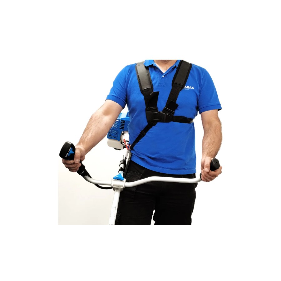 Incluye un arnés estándar doble que distribuye el peso de manera uniforme, reduciendo la fatiga durante el uso prolongado. Con un peso de 8.4 kg, es manejable y fácil de operar. Aunque su nivel de presión sonora es de 114 dB (A) LWA, se recomienda el uso de protección auditiva durante su operación para garantizar seguridad.