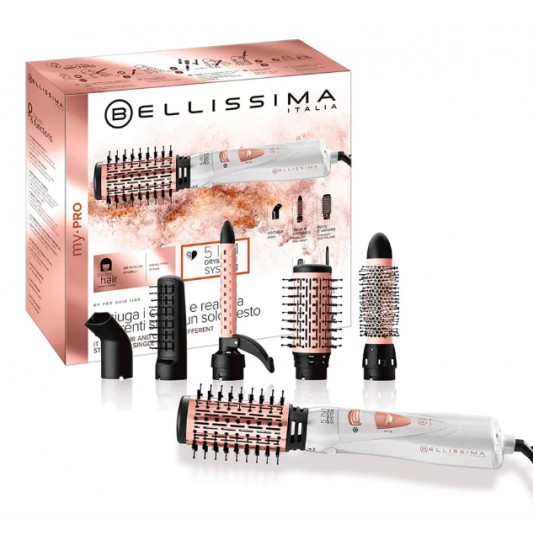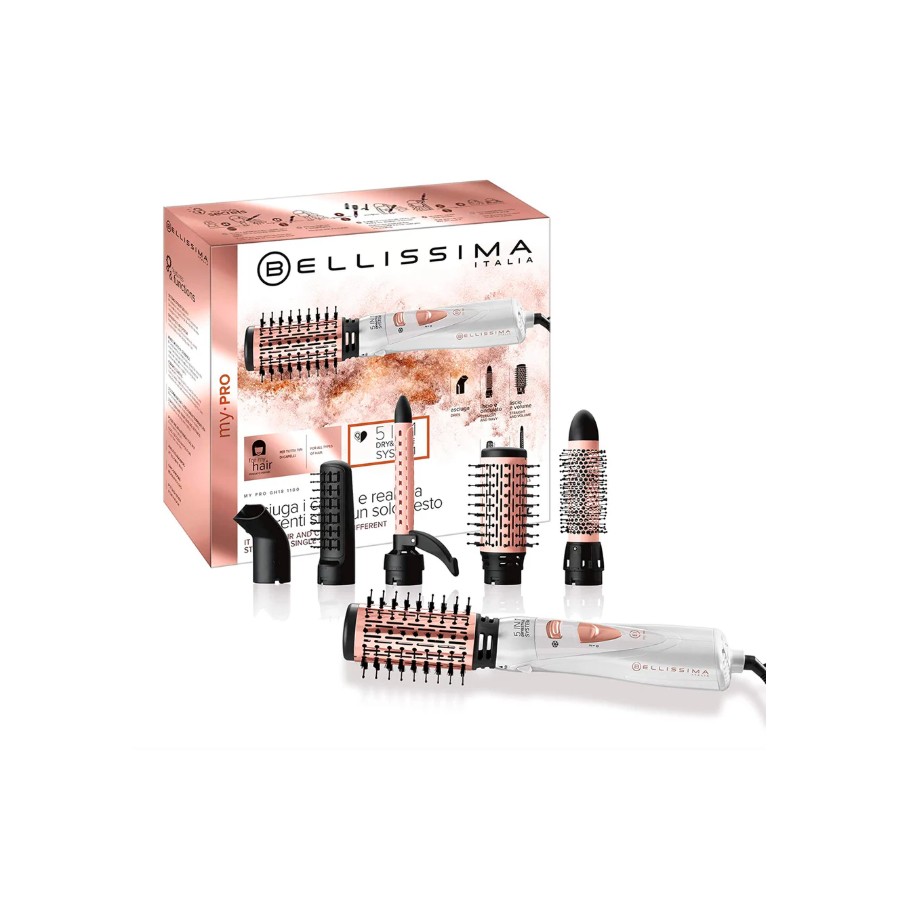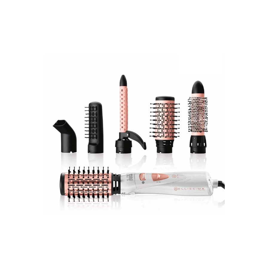 Cabello lacio, suave y voluminoso, ondulado con puntas moldeadas o rulos estrechos. Da rienda suelta a tu creatividad con Bellissima GH18 1100 5 en 1, el cepillo de aire caliente modelador que gracias a sus 5 accesorios, te permite crear varios looks.