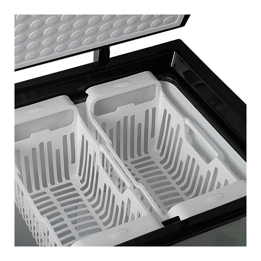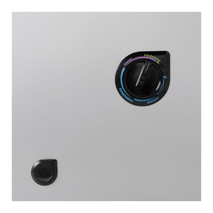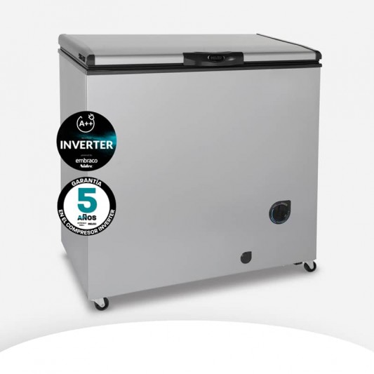 Freezer Full-4 Funciones de Frío. Color Gris Plata. Nuevo tablero, Un Canasto, Ruedas Giratorias de alta resistencia, Interior en chapa pre pintada blanca, Desagote Frontal. Refrigerante R600a. Eficiencia Energética A++