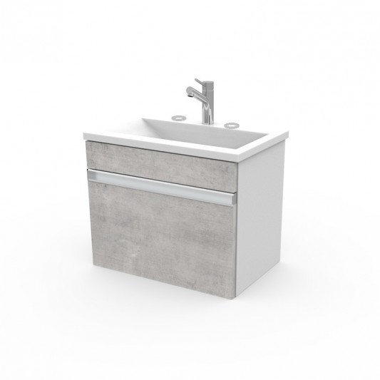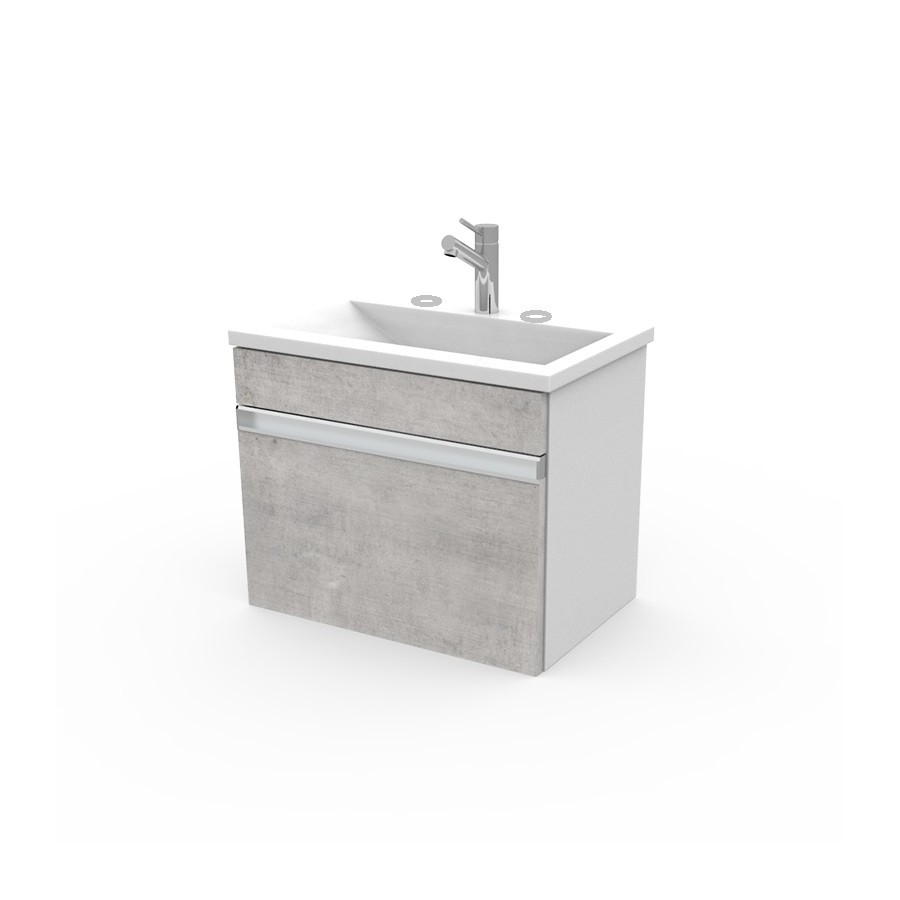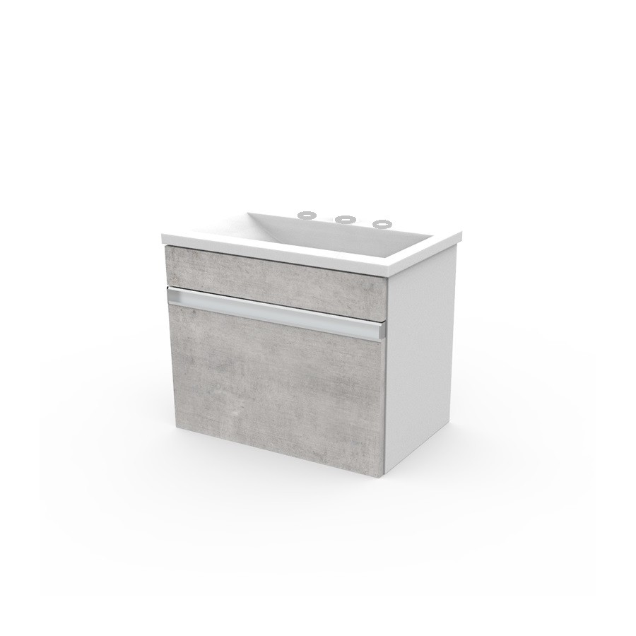 VANITORY RECTO COLGANTE CON MANIJA DE ALUMINIO Y UNA PUERTA VOLCABLE, CON MESADA DE MARMOLINA. SE ENTREGA EN CAJA PARA ARMAR.