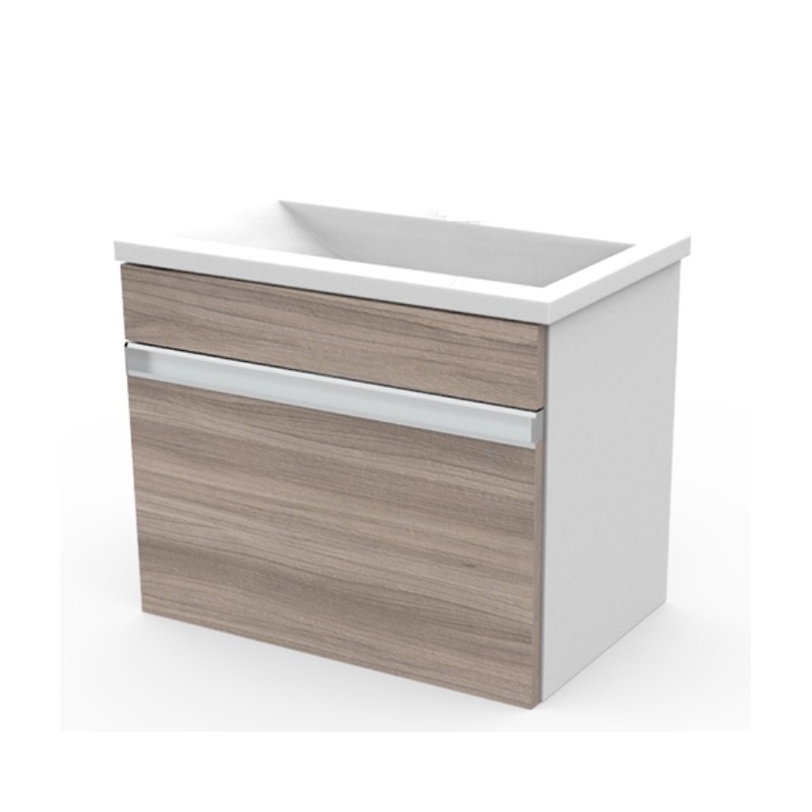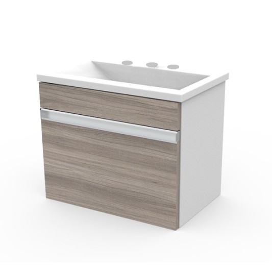 VANITORY RECTO COLGANTE CON MANIJA DE ALUMINIO Y UNA PUERTA VOLCABLE, CON MESADA DE MARMOLINA. SE ENTREGA EN CAJA PARA ARMAR.
