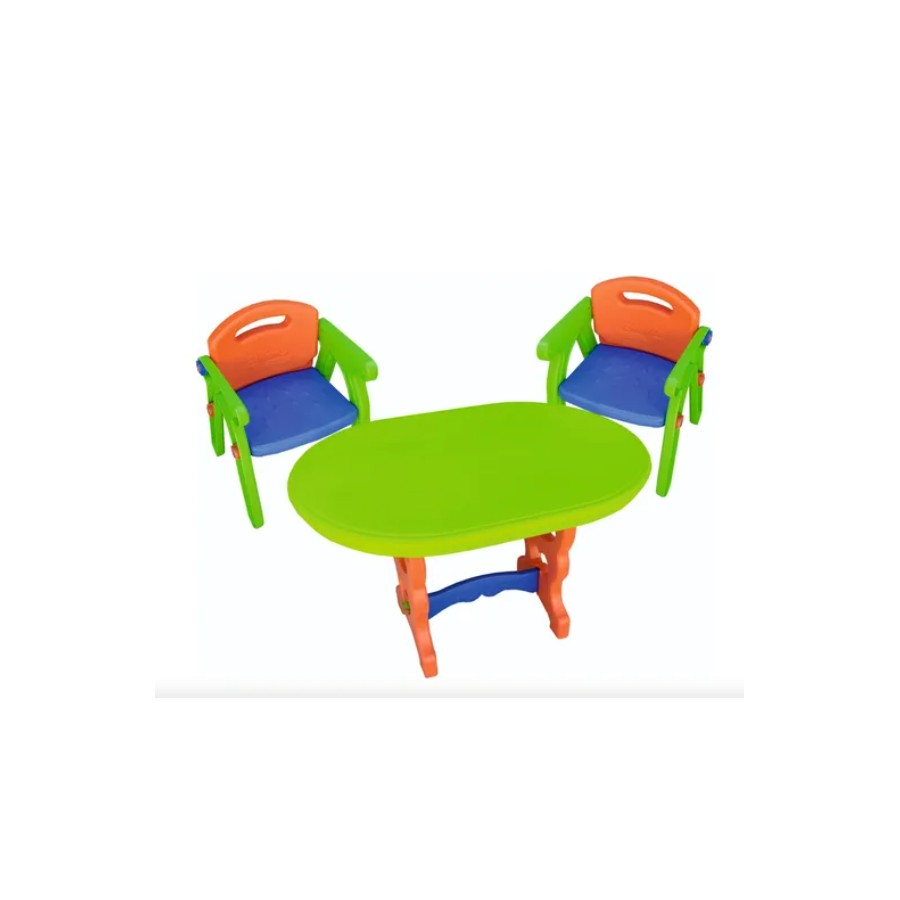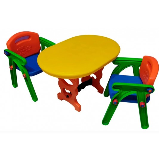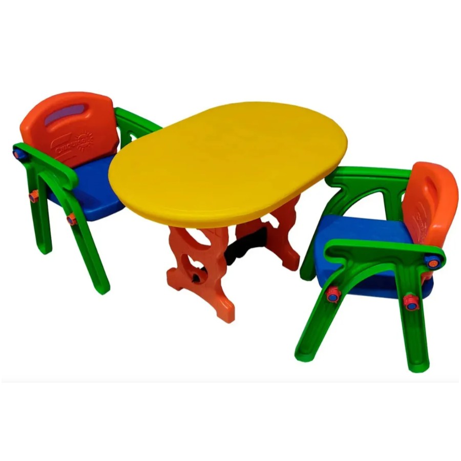 La mesa y sillas infantiles de Juegosol son el conjunto perfecto para los pequeños exploradores y creativos de casa. Diseñadas específicamente para niños de 2 a 10 años, esta mesa ovalada y sus dos sillas cuadradas ofrecen un espacio seguro y cómodo para jugar, dibujar o compartir un bocadillo con amigos. El colorido diseño con personajes infantiles capta la atención de los más pequeños, estimulando su imaginación y diversión.
