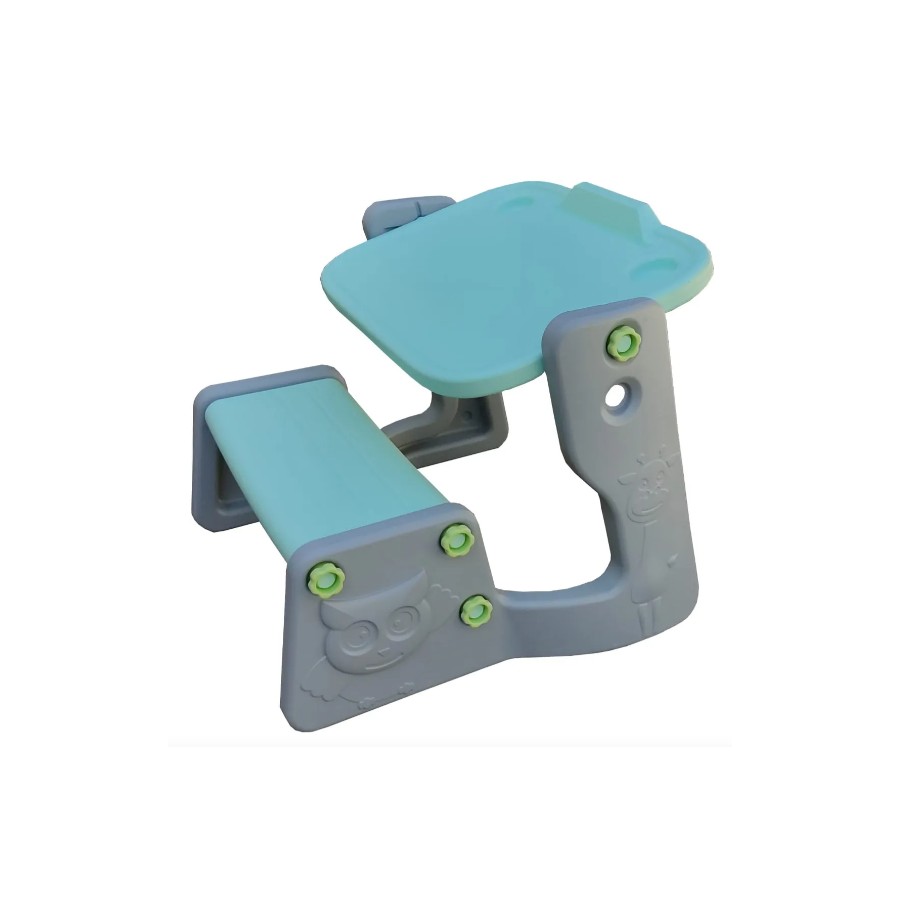 Cuenta con una superficie amplia que ofrece un espacio cómodo para escribir, leer o realizar manualidades, y un estante superior que permite mantener a mano libros, útiles escolares o pequeños objetos personales. También incorpora un práctico cajón en la parte inferior, ideal para guardar lápices, hojas o todo tipo de materiales que los chicos utilizan a diario, fomentando así el hábito del orden desde temprana edad. La estructura es estable y está pensada para brindar seguridad, con bordes suavemente redondeados y terminaciones prolijas. Además, es fácil de limpiar y su armado es sencillo, lo que permite tenerlo listo en poco tiempo sin necesidad de herramientas especiales.