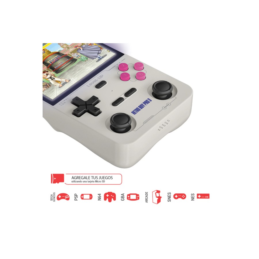¡Revive la nostalgia de los videojuegos clásicos con la Consola Portátil Retroboy Pro 3! Esta increíble multiconsola emuladora es perfecta para los amantes de los juegos retro, ofreciendo una experiencia de juego única y divertida.