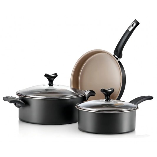 Este kit de fábrica incluye 2 cacerolas y 1 sartén, todas fabricadas en aluminio de primera calidad, garantizando una distribución uniforme del calor.