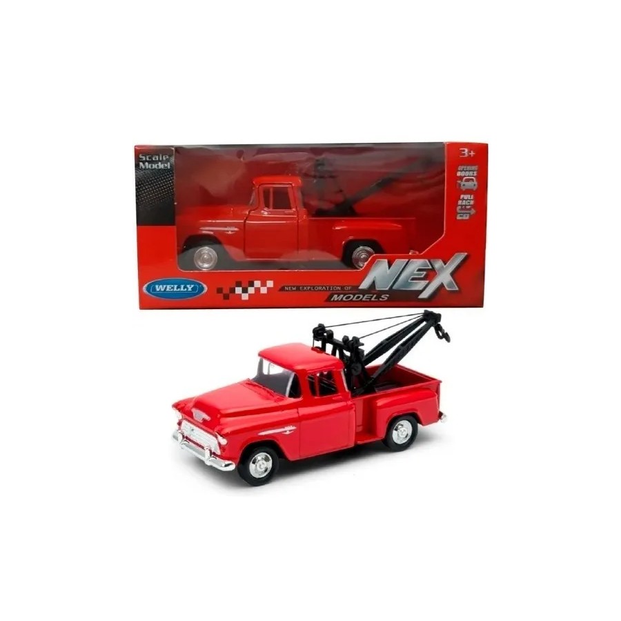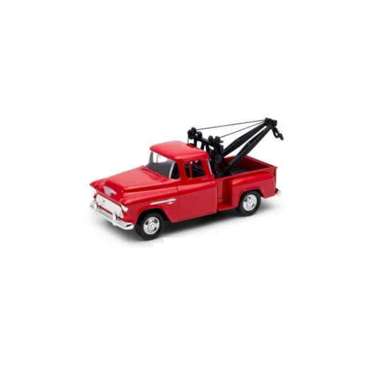 Sumérgete en el mundo de los vehículos en miniatura con este increíble Welly 1:34 1955 Chevy Stepside Tow Truck Rojo 43765cw.