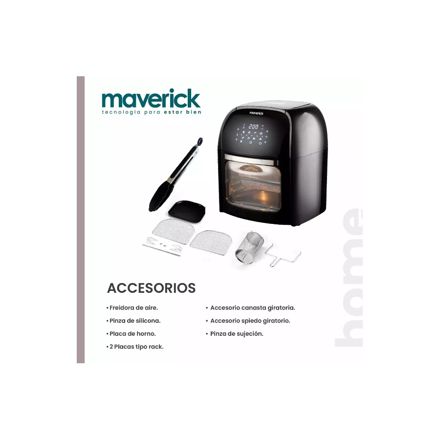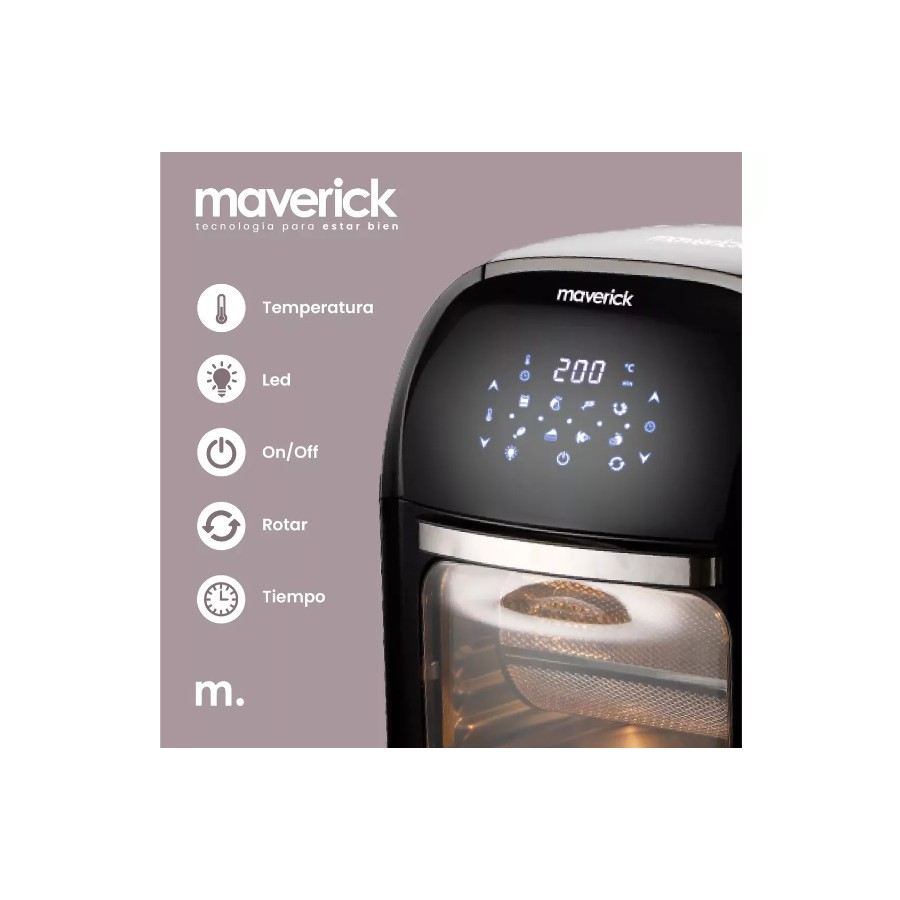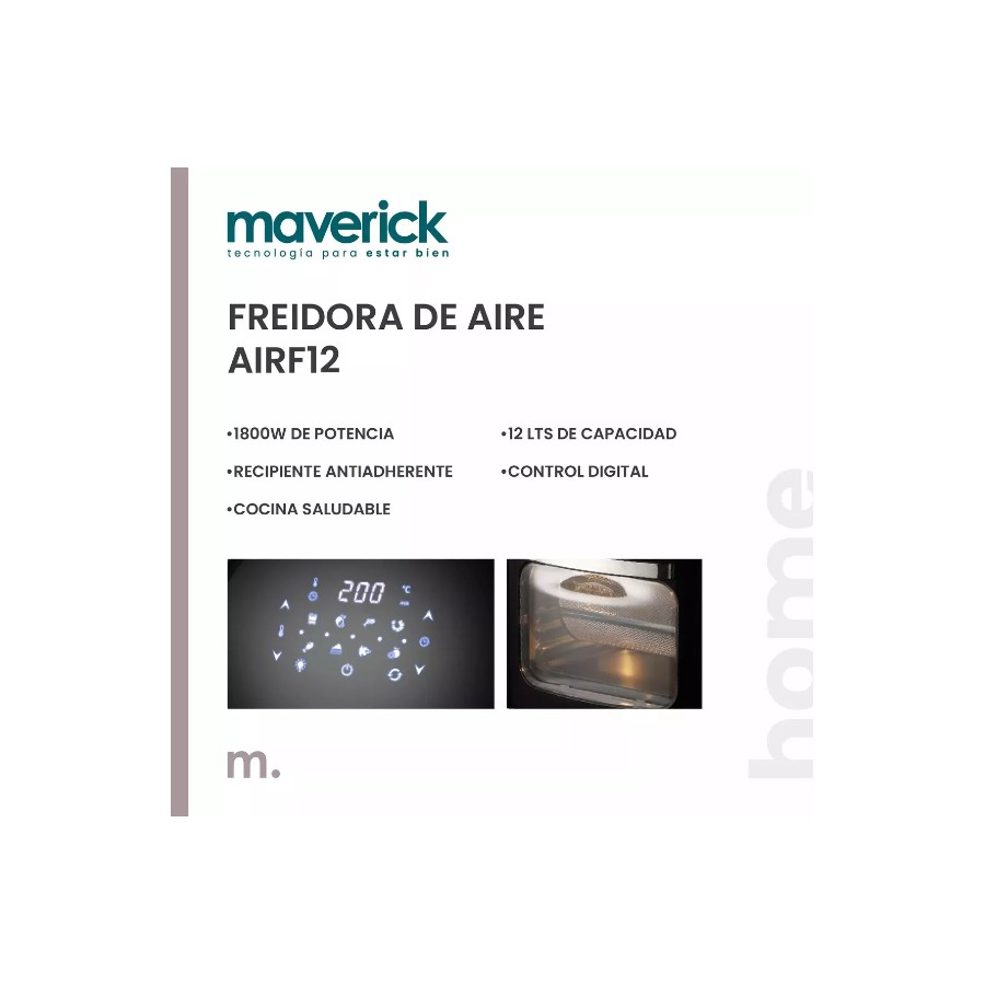 La freidora de aire sin aceite Maverick Airf12 1800w es el electrodoméstico perfecto para aquellos que desean disfrutar de alimentos fritos de manera más saludable. Con su potencia de 1800 W, esta freidora te permitirá cocinar tus platos favoritos de forma rápida y eficiente. Su capacidad en volumen de 12 L te brinda espacio suficiente para preparar comidas para toda la familia. Además, su control digital te facilitará el ajuste preciso de la temperatura y el tiempo de cocción, garantizando resultados perfectos en cada ocasión. La freidora de aire Maverick Airf12 1800w es la opción ideal para aquellos que buscan una alternativa más saludable y deliciosa a la fritura tradicional.