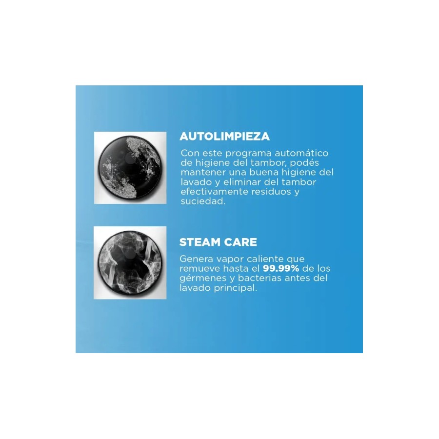 Programas Algodón Mix Sintéticos Jeans 20°C Antialérgico Vapor Rápido 15 min Rápido 45 min EEE Edredón Lana Enjuague y centrifugado Centrifugado Limpieza de tambor