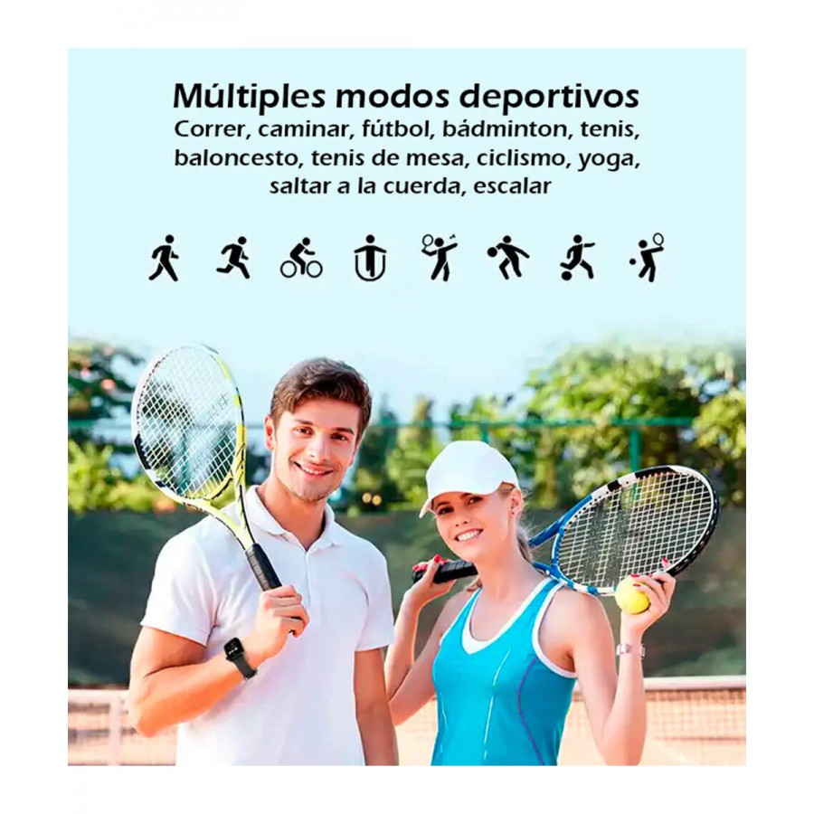Ideal para los amantes del deporte, con modo multidisciplina: correr, ciclismo, tenis, y más. También incluye podómetro, recordatorios de hidratación y monitoreo de sueño.