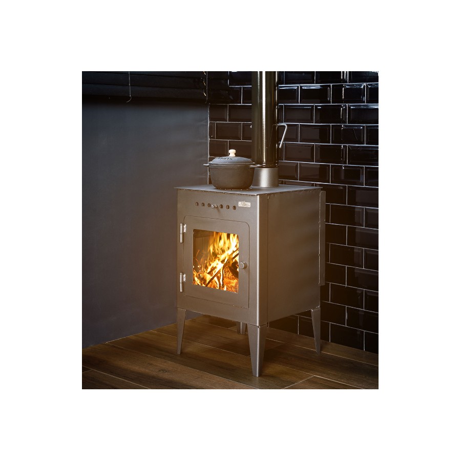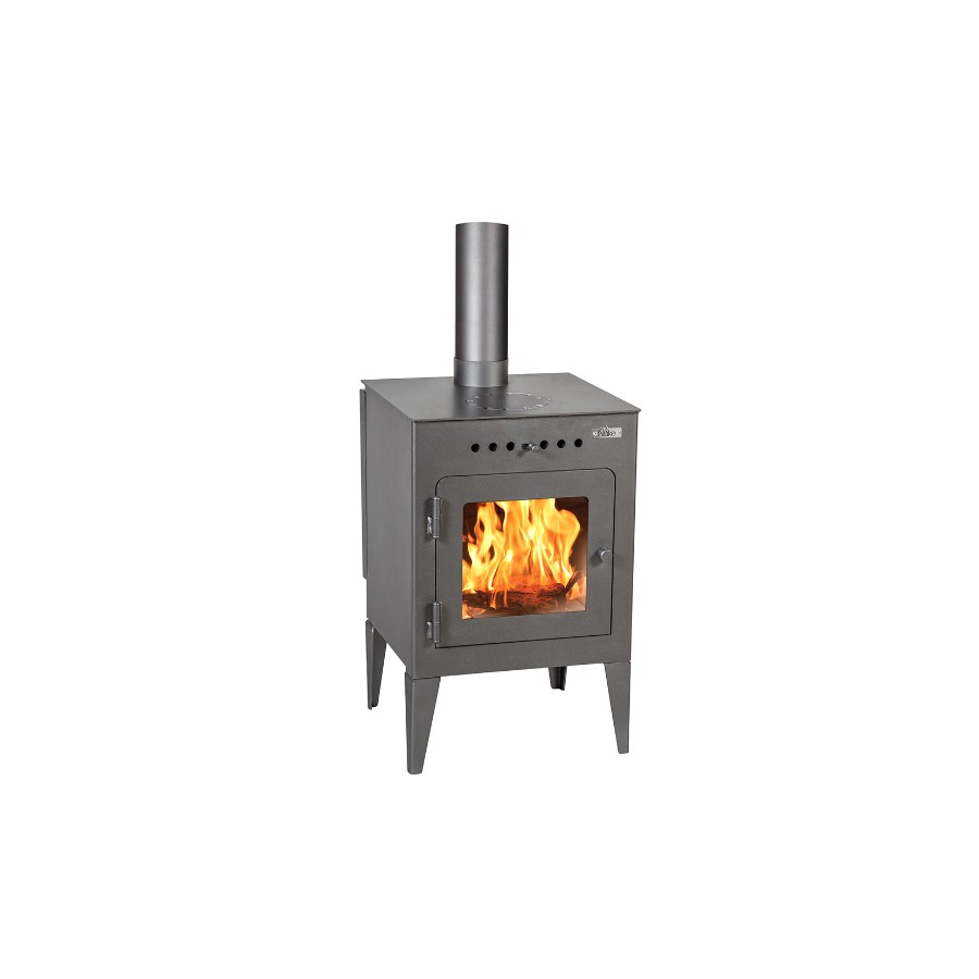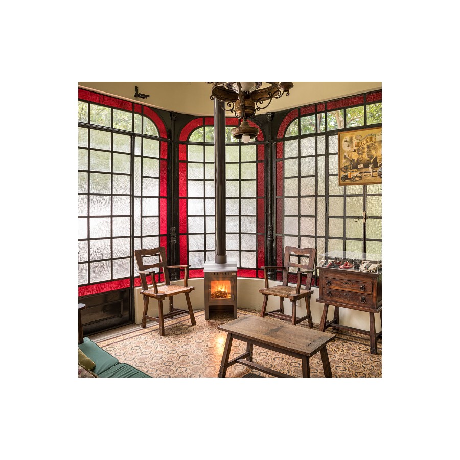 Recubierta totalmente su cámara por tejuelas refractarias. Posee dos cámaras de combustión, donde se queman todos los gases (no emite humo, ni olor), su sistema de doble combustión logra un alto rendimiento de biomasa.