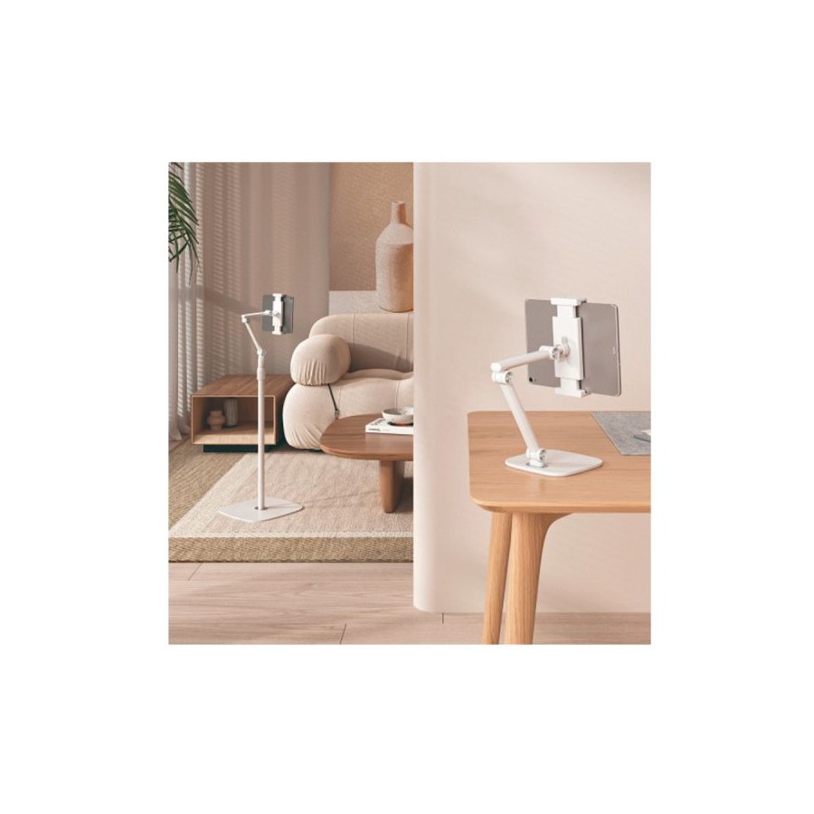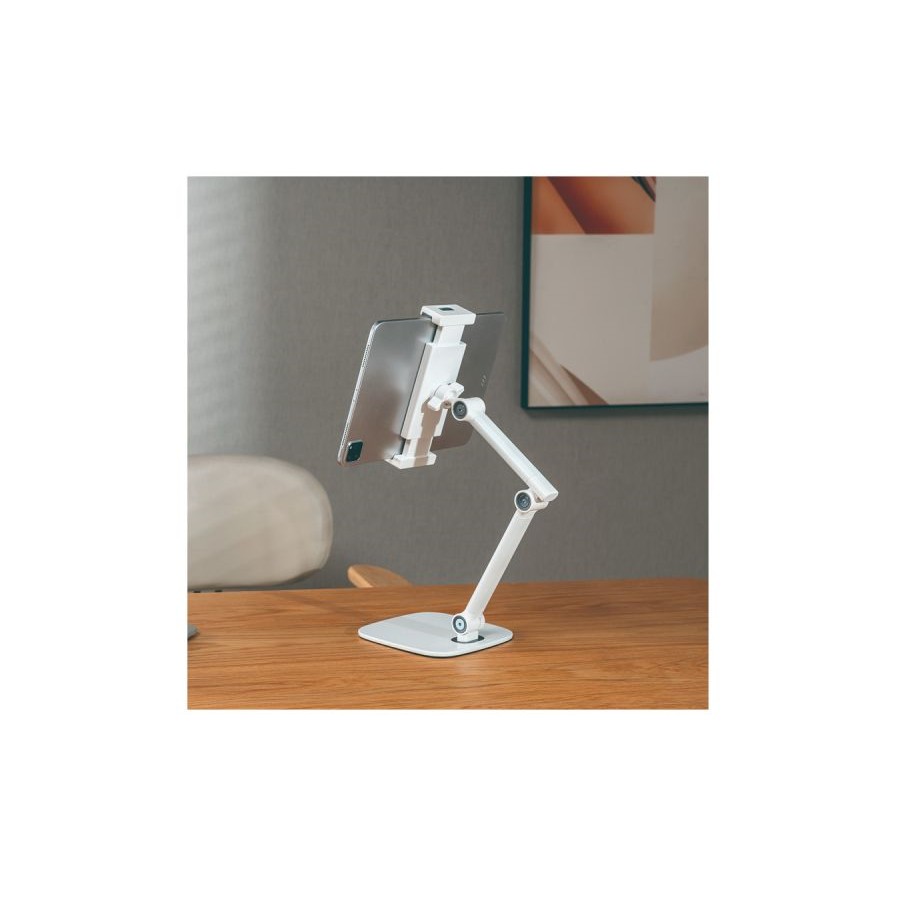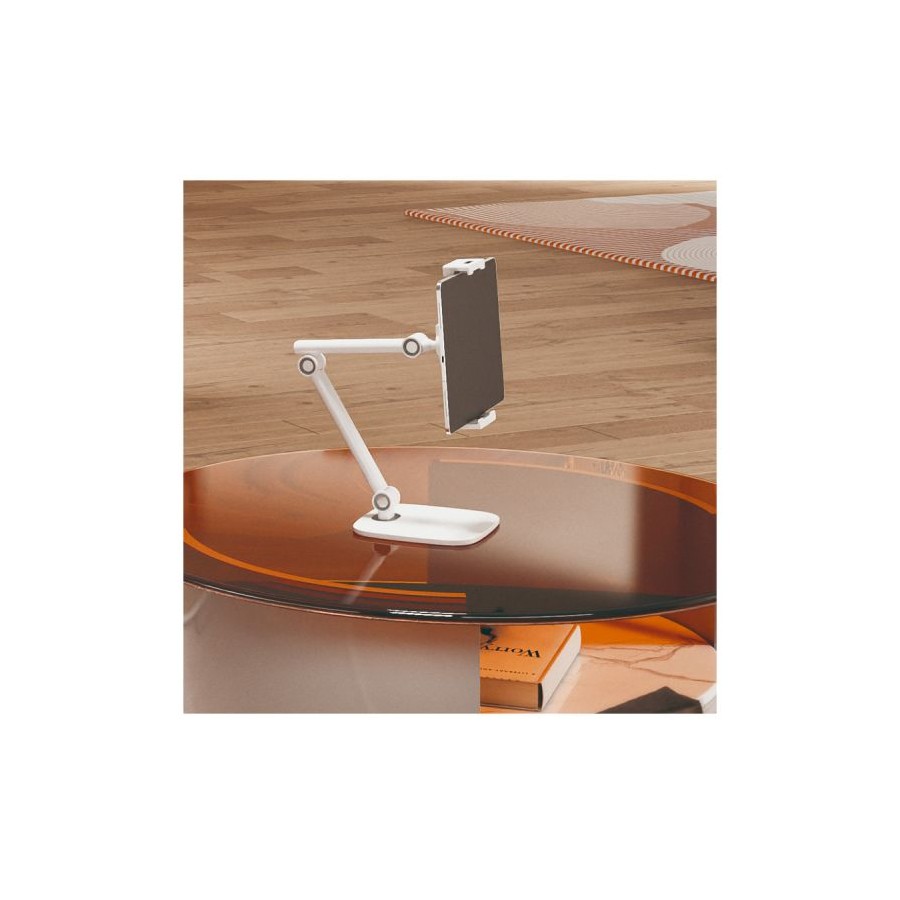 Este soporte para escritorio está diseñado para facilitar tu vida diaria. Con su ángulo de rotación vertical y horizontal, podrás ajustar fácilmente el ángulo de posición para que tu tablet o celular estén a la distancia deseada. Con su clip para tableta o celular, podrás expandirlo de 12,80 a 22,4 cm, lo que lo hace adecuado para la mayoría de los dispositivos móviles.