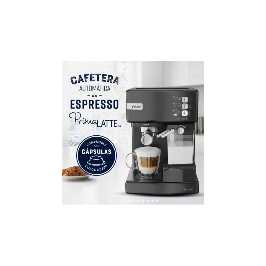 Vive la experiencia de un café auténtico y delicioso que ofrece la cafetera automática de espresso Oster® PrimaLatte™. Ahora con funciones que te permiten disfrutar variedades de bebidas, desde espresso, capuccinos y lattes, hasta el uso de cápsulas de Dolce Gusto*. Todo al toque de un botón.
