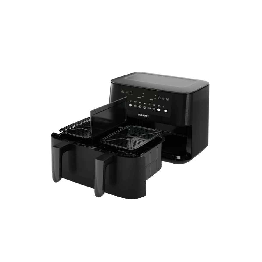Canasta de 9 L con placa divisora opcional que permite separar el compartimento en dos de 4,5 L para cocinar distintos platos sin mezclar sabores