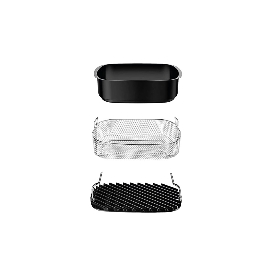 - 3 Accesorios desmontables: Olla, Grill y Canasta Freidora.