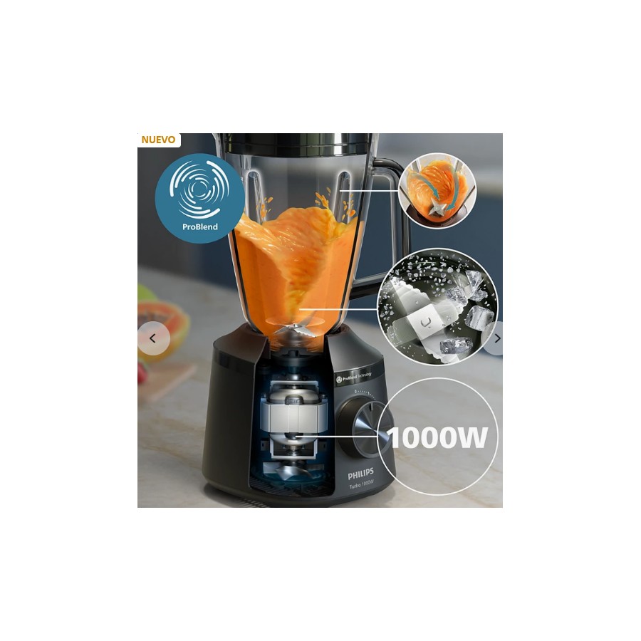 La nueva Turbo HR2260 de la serie 3000 cuenta con un potente motor de 1000 W, 5 velocidades y un jarra en forma de V de 3 L para ofrecer un rendimiento completamente excepcional en la preparación de sus recetas favoritas.