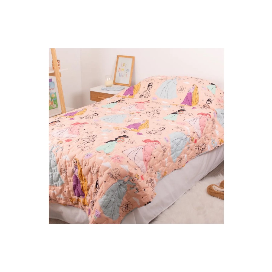 Descripción: Cubrecama 1 1/2 plaza Princesas Nuevo cubrecama con Extra Suavidad para abrazos y sueños junto a las Princesas de Disney. La nueva tela ""Washed"" permite una textura sedosa y muy suave al tacto. Al ser más liviano, permite un mejor desacanso en las noches no tan frías.