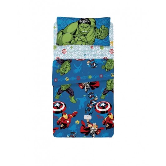 El juego de sábana incluye tres piezas. Cada pieza tiene un diseño único y divertido con sus superhéroes favoritos: Spiderman, Iron Man, Hulk, Thor y Capitán América.