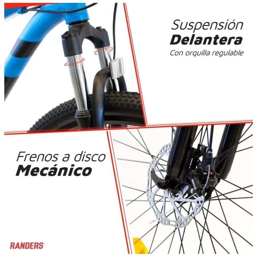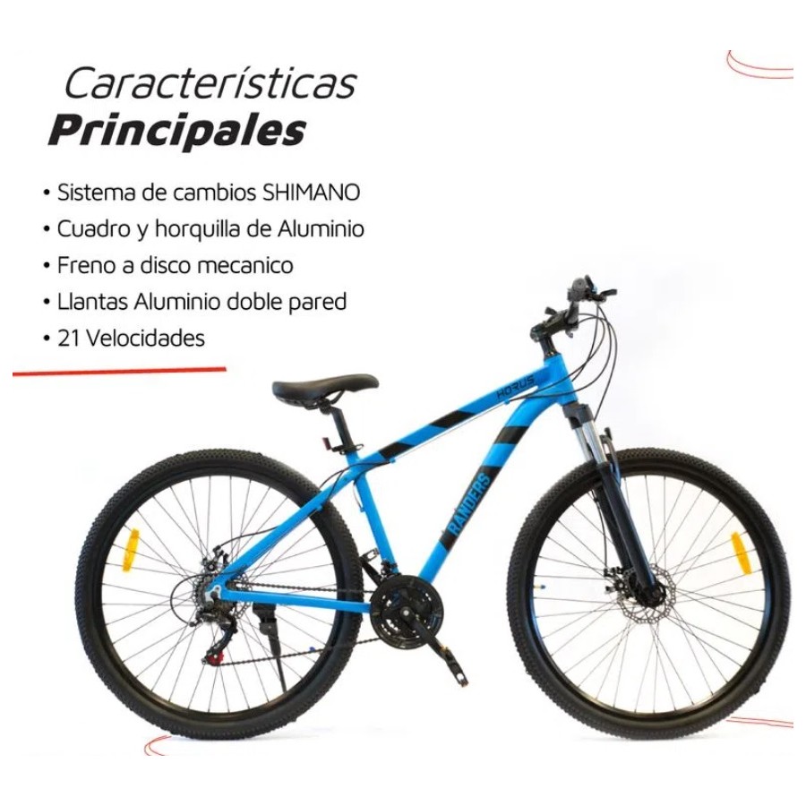 Ruedas 29” con llanta doble pared, mazas con Quick release de Aluminio.