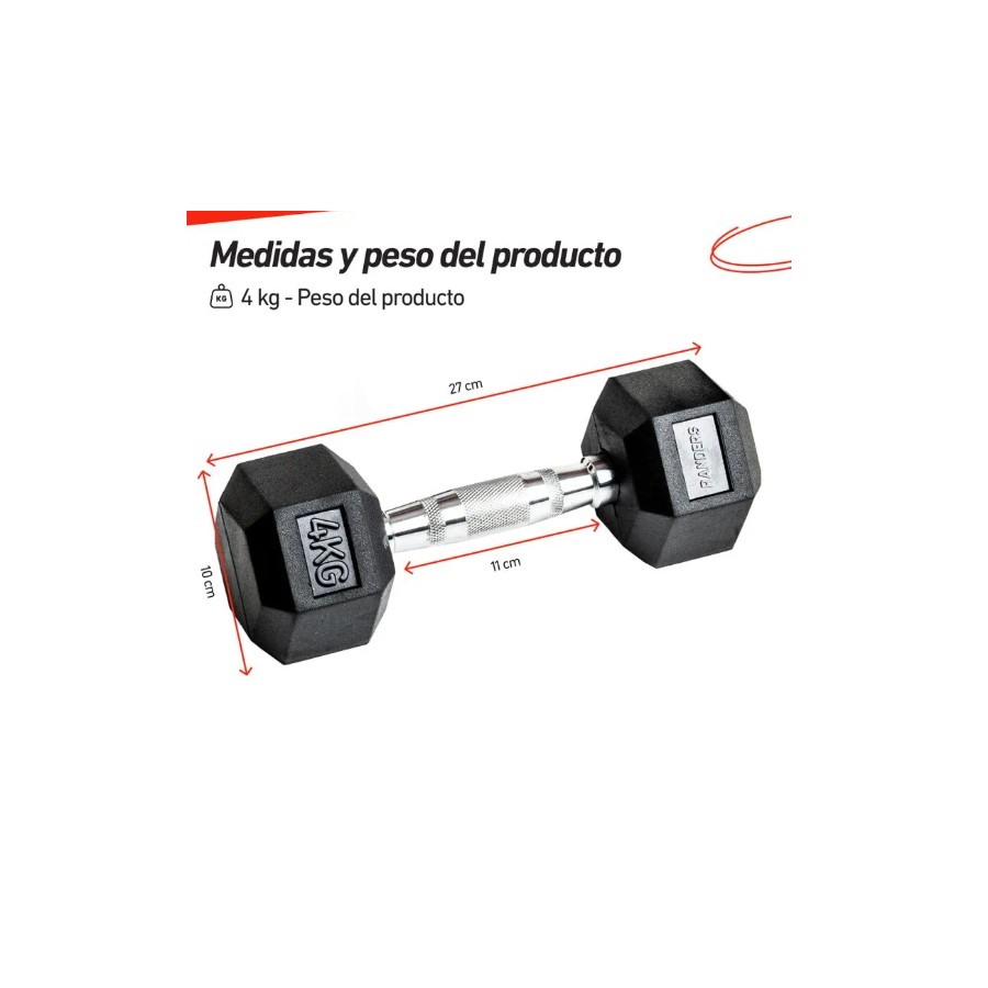Su construcción en goma de alta densidad y acero cromado asegura durabilidad y un rendimiento óptimo, mientras que el diseño hexagonal evita deslizamientos innecesarios.
