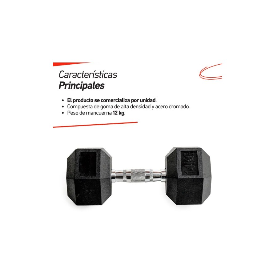 Además, su diseño hexagonal asegura que la mancuerna se mantenga en su lugar, facilitando su uso y almacenamiento.