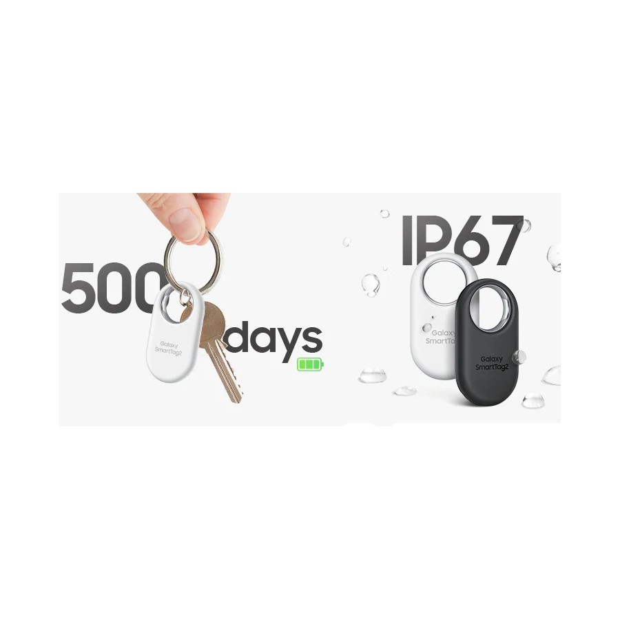 El rediseño del Galaxy SmartTag2 es cómodo de etiquetar y transportar, duradero con clasificación IP67 de resistencia al polvo y al agua, le brinda acceso remoto a sus dispositivos IoT y está activo por hasta 500 días o incluso hasta un 40% más en el modo de ahorro de energía.